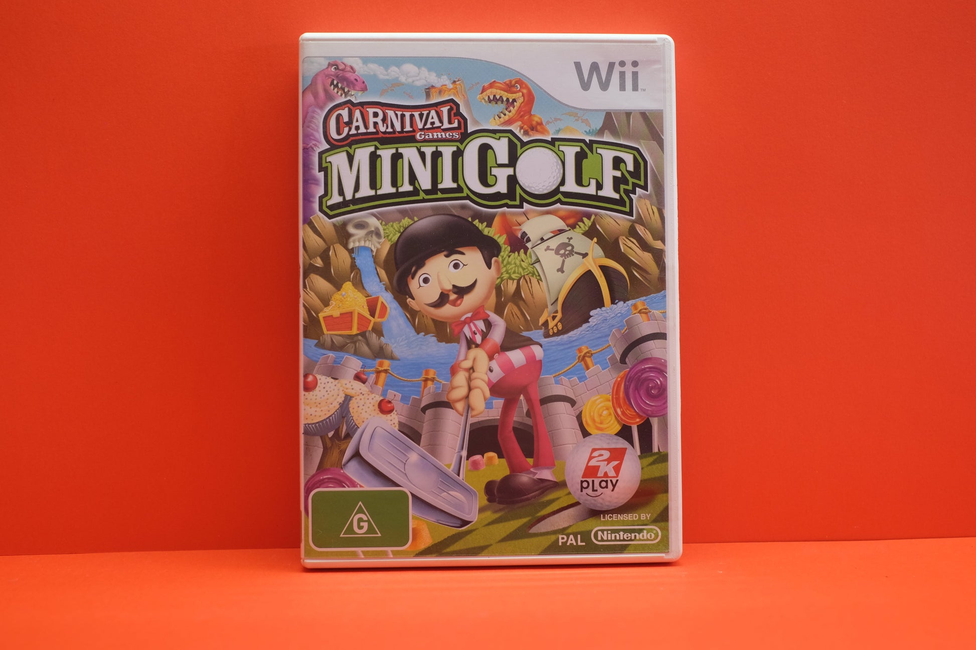 Set across nine whacky theme park styled environments, the courses players will explore in Carnival Games: MiniGolf have something for everyone. Whether it's a trip back in time to the land of dinosaurs, keeping order in the Wild West or searching for a buried treasure in Pirate's Cove, the game combines traditional mini-golf fare with action-oriented game play - utilizing the unique capabilities of the Wii Remote. Toss in its multiple game modes, including single and multiplayer campaigns supporting up to four players, extensive character customization and accessories and a golf bag full of mini-games and you have the makings for a 'Hole' Lotta Fun!