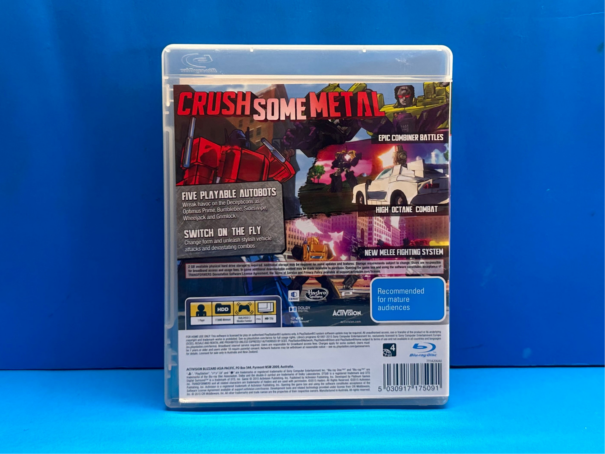 "Transformers: Devastation" is an action hack-and-slash game developed by PlatinumGames and published by Activision. Released for multiple platforms, including PlayStation 4, the game is set in the iconic Transformers universe and features a cel-shaded art style that pays homage to the classic animated series.