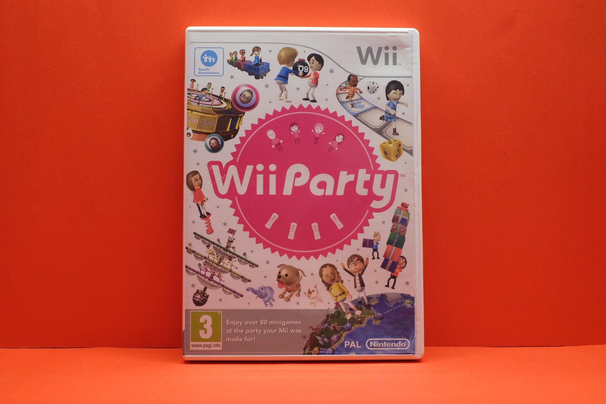 Wii Party is a party video game developed and published by Nintendo for the Wii video game console. The game heavily borrows game play elements from the Mario Party series, another Nintendo franchise. It is also the first game in the Wii series that Shigeru Miyamoto did not produce.